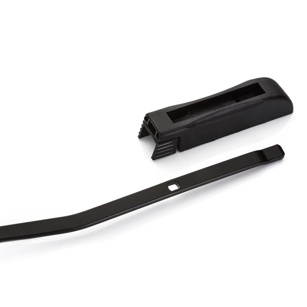 - Le caoutchouc d'essuie-glace est constitué d'un mélange à base de caoutchouc naturel additionné de graphite, ce qui améliore le coefficient de frottement et réduit le bruit de l'essuie-glace. Les bandes souples latérales sont en acier hautement résilient, recouvertes d'un revêtement plastique résistant aux rayons UV et aux intempéries (sels, acides, polluants des gaz d'échappement).
