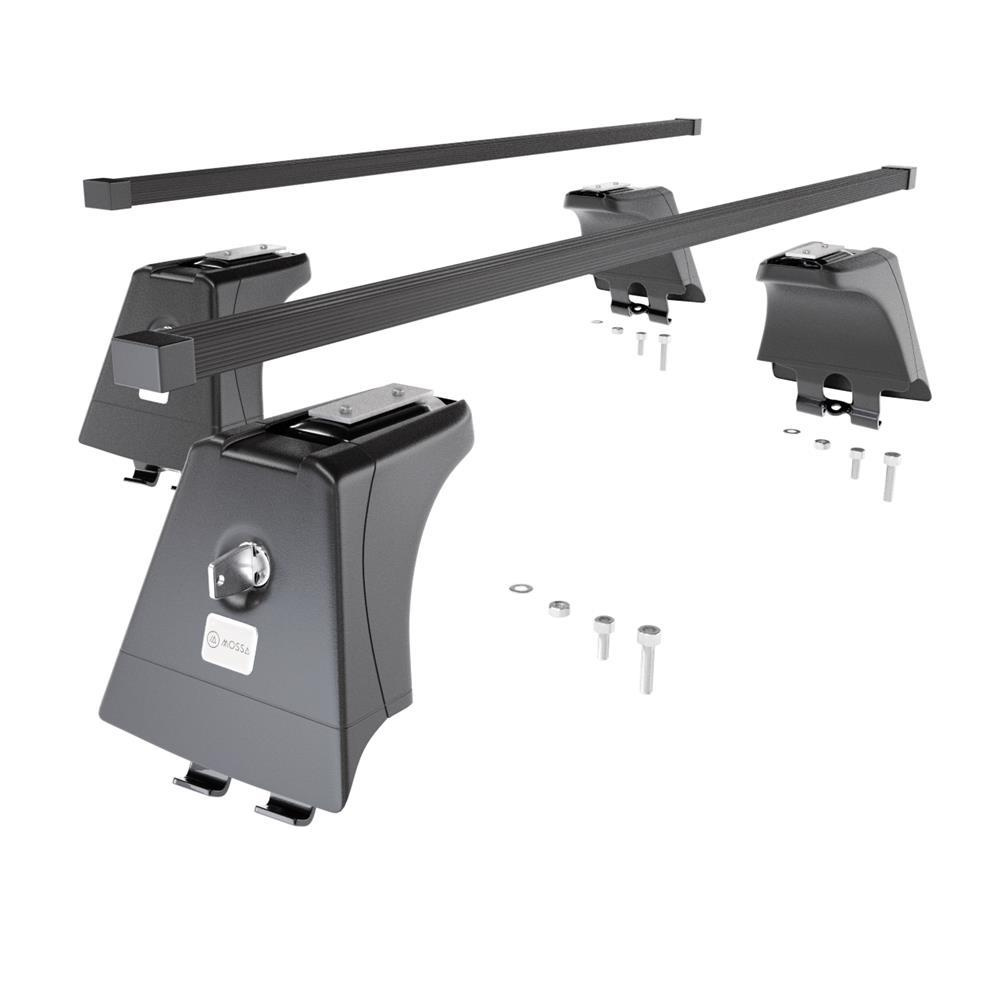 - Le kit de barres de toit se compose de 2 barres en acier solides ainsi que de 4 prises (appelé aussi patte), qui s’adaptent au type de toit ainsi qu’au modèle ou à la génération de la voiture sélectionnée.