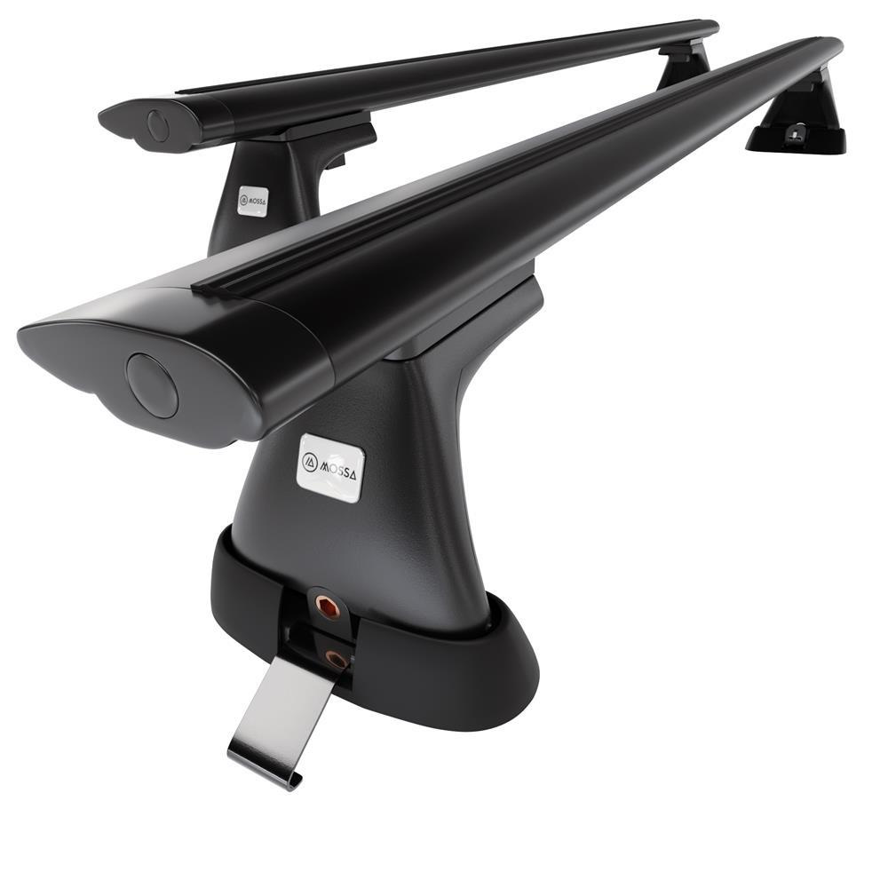 - Le kit de barres de toit se compose de 2 barres en aluminium solides ainsi que de 4 prises (appelé aussi patte), qui s’adaptent au type de toit ainsi qu’au modèle ou à la génération de la voiture sélectionnée.