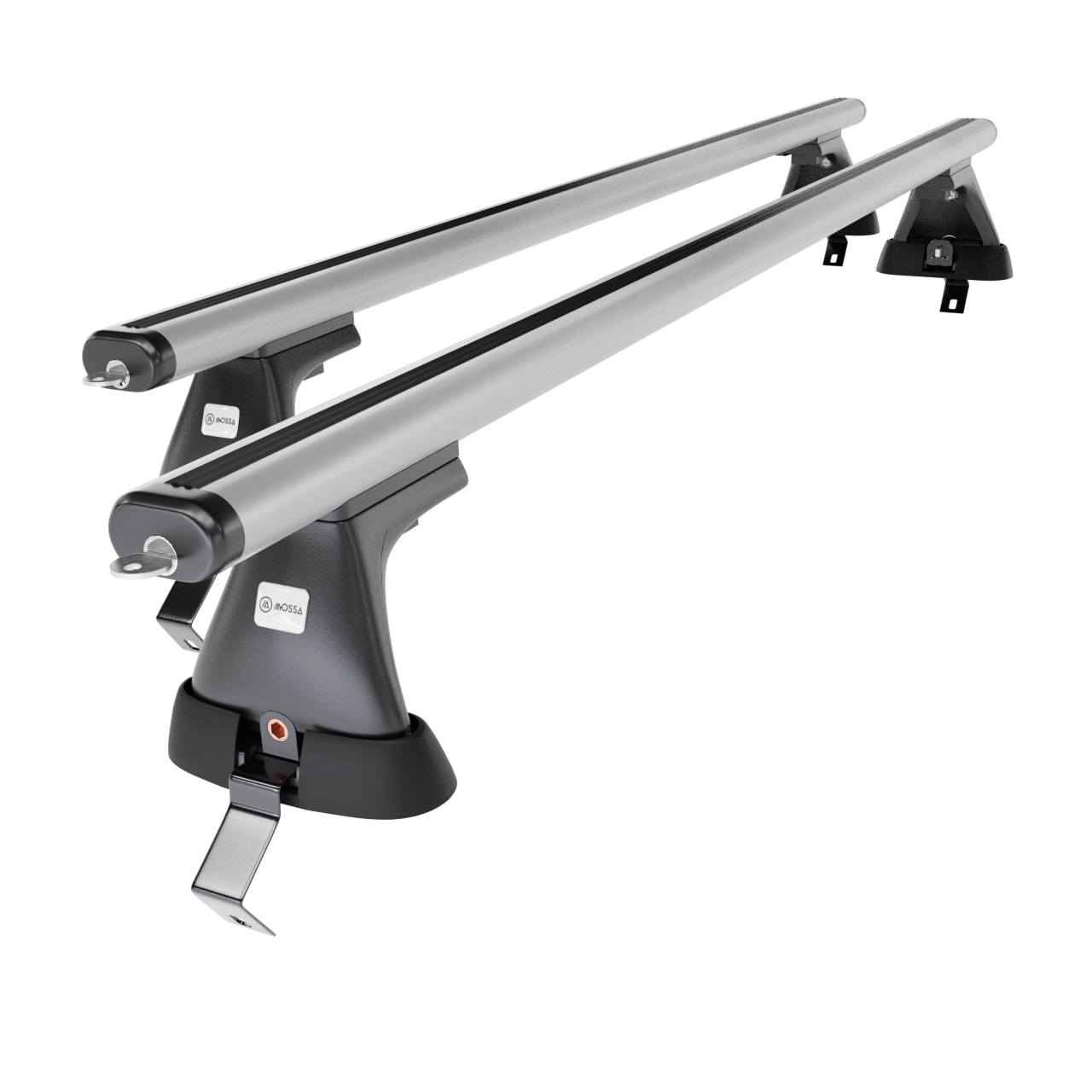 - Le kit de barres de toit se compose de 2 barres en aluminium solides ainsi que de 4 prises (appelé aussi patte), qui s’adaptent au type de toit ainsi qu’au modèle ou à la génération de la voiture sélectionnée.