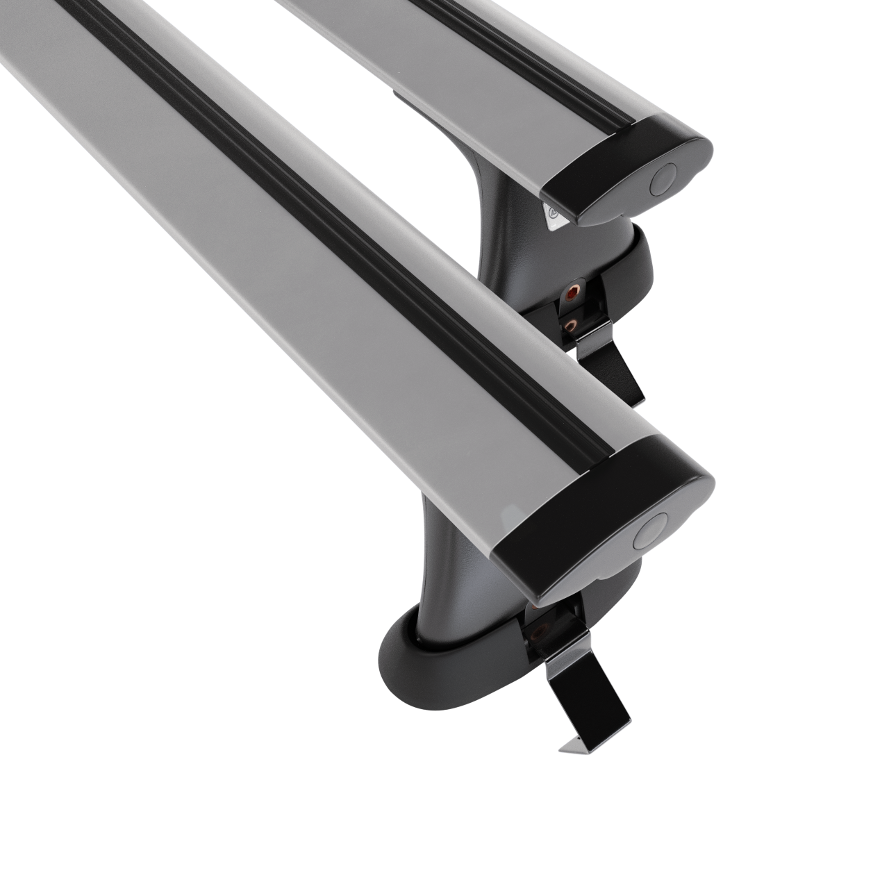 - Le kit de barres de toit se compose de 2 barres en aluminium solides ainsi que de 4 prises (appelé aussi patte), qui s’adaptent au type de toit ainsi qu’au modèle ou à la génération de la voiture sélectionnée.