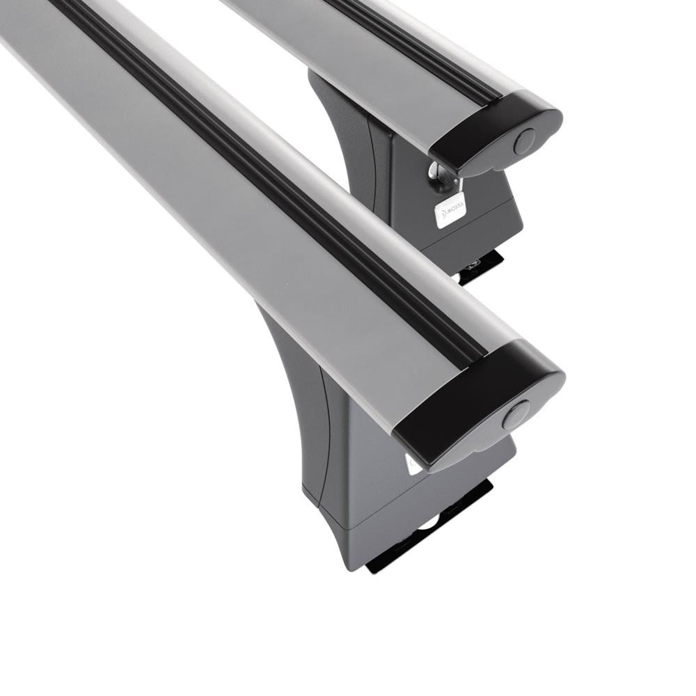- Le kit de barres de toit se compose de 2 barres en aluminium solides ainsi que de 4 prises (appelé aussi patte), qui s’adaptent au type de toit ainsi qu’au modèle ou à la génération de la voiture sélectionnée.