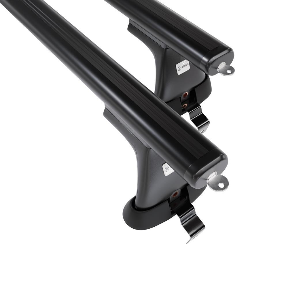 - Le kit de barres de toit se compose de 2 barres en aluminium solides ainsi que de 4 prises (appelé aussi patte), qui s’adaptent au type de toit ainsi qu’au modèle ou à la génération de la voiture sélectionnée.