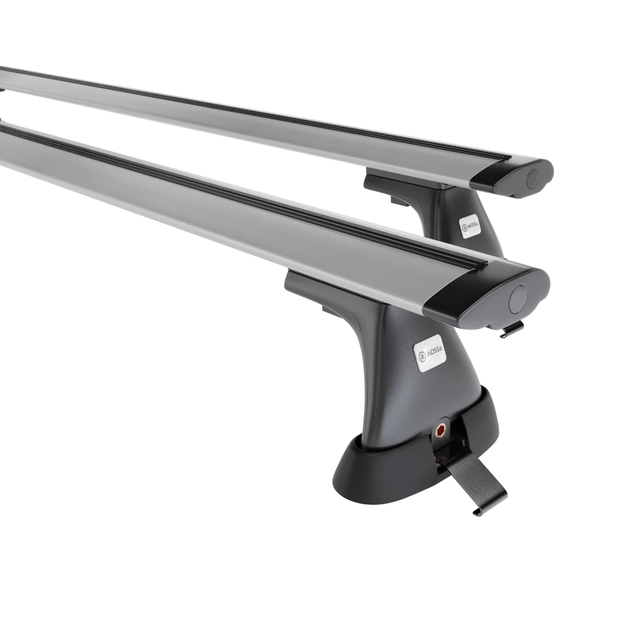 - Le kit de barres de toit se compose de 2 barres en aluminium solides ainsi que de 4 prises (appelé aussi patte), qui s’adaptent au type de toit ainsi qu’au modèle ou à la génération de la voiture sélectionnée.