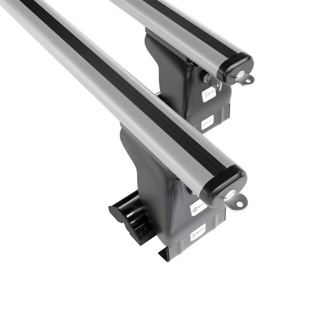 - Le kit de barres de toit se compose de 2 barres en aluminium solides ainsi que de 4 prises (appelé aussi patte), qui s’adaptent au type de toit ainsi qu’au modèle ou à la génération de la voiture sélectionnée.