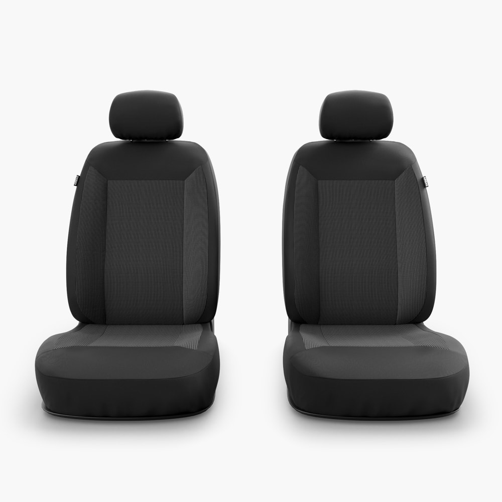 - Les housses sont en tissu de tapisserie noir avec un empiècement jacquard graphite au centre.