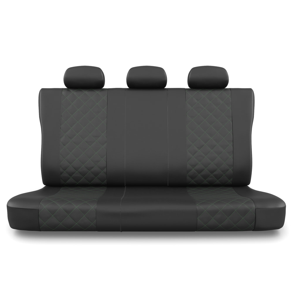 - Les housses sont en similicuir noir résistant et antitache, avec un matelassage décoratif au centre vert. Les housses avant sont également ornées de broderies.