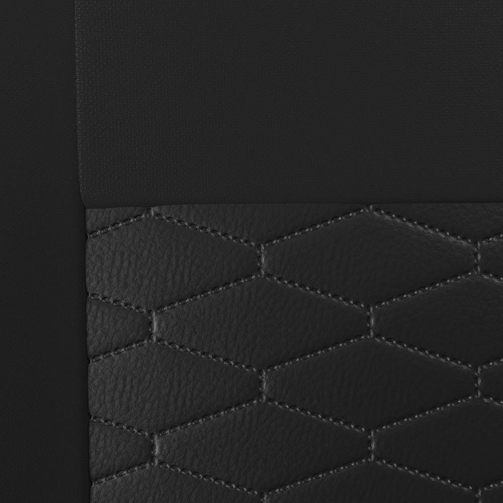 - Les housses sont faites de cuir artificiel matelassé de haute qualité dans la partie centrale et de matériaux de revêtement de haute qualité dans les parties latérales.
