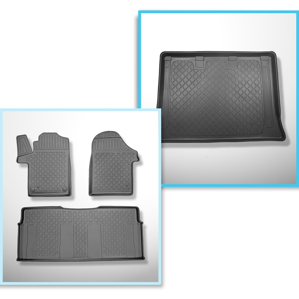 Kit tapis de coffre et tapis de voiture TPE pour: Mercedes-Benz EQV 300 Van (10.2020-....) - version Extra longue (Extra Long) (empattement 3430 mm, longueur du véhicule 5370 mm);pour la 3ème rangée de sièges;sans séparation de l'espace bagage;sans 3ème r
