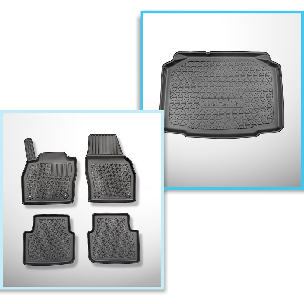Kit tapis de coffre et tapis de voiture TPE pour: Skoda Kamiq SUV (09.2019-....) - coffre inférieur (sans plancher multi-fonction)