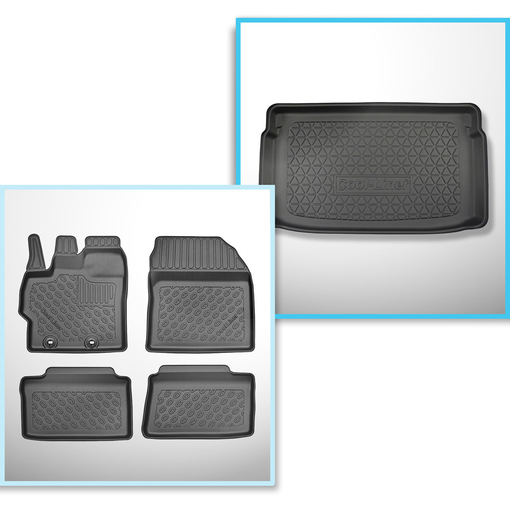 Kit tapis de coffre et tapis de voiture TPE pour: Toyota Yaris IV Hayon (11.2020-....) - coffre supérieur;pour les voitures avec double plancher de coffre;également pour les hybrides