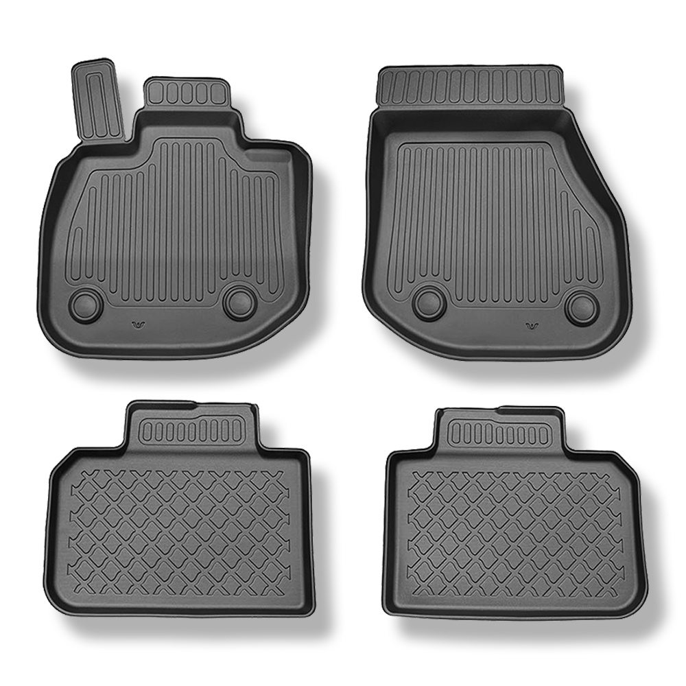 - Un ajustement parfait au sol et les fixations utilisées en fonction du modèle de voiture empêchent les tapis de bouger pendant la conduite. La production de tapis est réalisée selon les normes de qualité les plus élevées, et les matériaux utilisés pour leur production sont sans danger pour la santé et sont recyclables. Les tapis sont imperméables et faciles à nettoyer (ils peuvent être nettoyés à l'eau courante, également avec un nettoyeur haute pression).