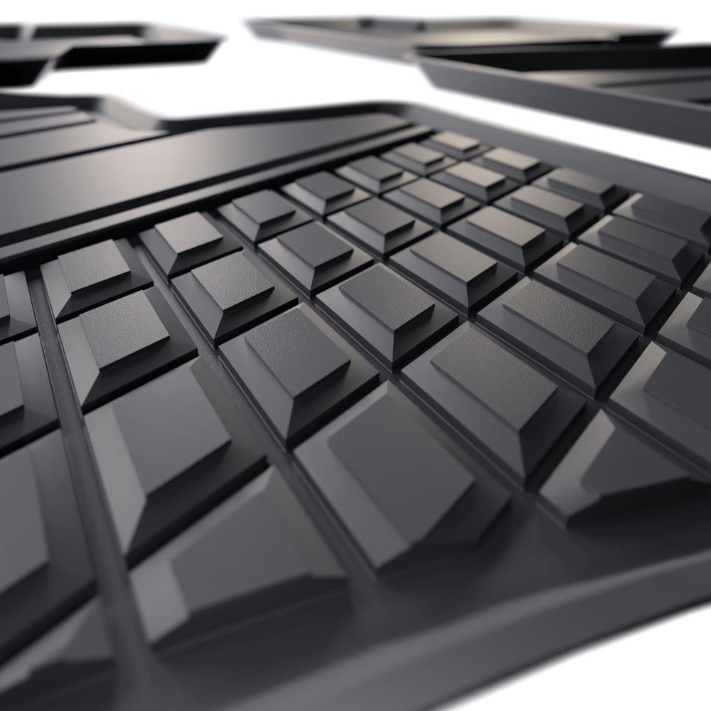 - Les tapis de voiture sont fabriqués dans un matériau TPE spécial, résistant aux températures élevées et basses, aux huiles et aux produits chimiques. Les tapis sont antidérapants, extrêmement durables et ont un rebord haut qui maintient parfaitement la saleté à l'intérieur du tapis.