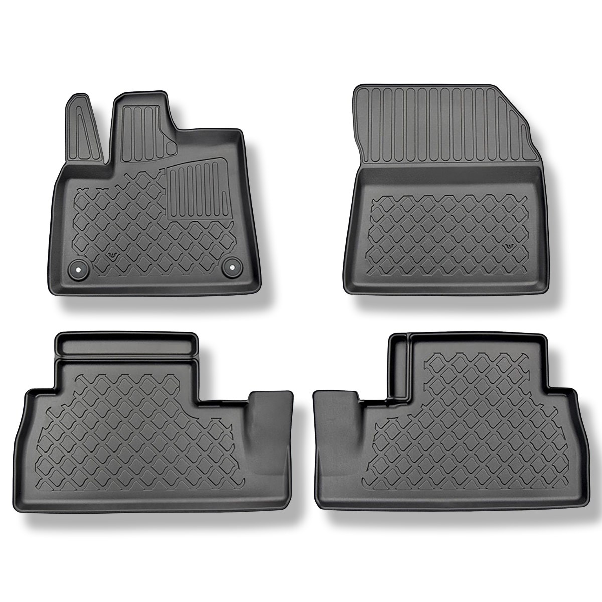 - Un ajustement parfait au sol et les fixations utilisées en fonction du modèle de voiture empêchent les tapis de bouger pendant la conduite. La production de tapis est réalisée selon les normes de qualité les plus élevées, et les matériaux utilisés pour leur production sont sans danger pour la santé et sont recyclables. Les tapis sont imperméables et faciles à nettoyer (ils peuvent être nettoyés à l'eau courante, également avec un nettoyeur haute pression).