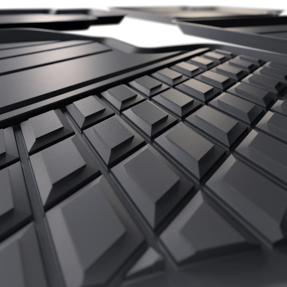 - Un ajustement parfait au sol et les fixations utilisées en fonction du modèle de voiture empêchent les tapis de bouger pendant la conduite. La production de tapis est réalisée selon les normes de qualité les plus élevées, et les matériaux utilisés pour leur production sont sans danger pour la santé et sont recyclables. Les tapis sont imperméables et faciles à nettoyer (ils peuvent être nettoyés à l'eau courante, également avec un nettoyeur haute pression).